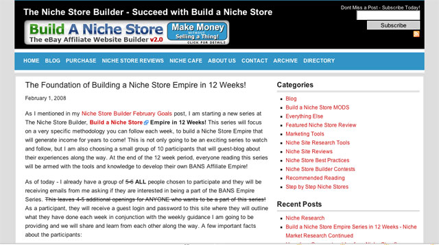 I just got an email from the Build A Niche Store(BANS)forum. They are going to be starting a free twelve-week money making course for BANS forum members. They will be selecting ten participants from the BANS forum to guest blog about this program. Each week will concentrate on a different aspect of getting your store up and running and making money. I'm very excited … [Read more...] about Build A Niche Store Announces Free 12 Week Store Building Course